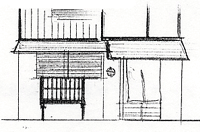 戦前木造の郊外型住宅のひとつ。道路に面して出窓の格子が残っています。1階は日本画や装飾品の製作工房と展示場として、2階は和室の空間を生かしたギャラリーとして新たな空間に変わりました。(2004.2)