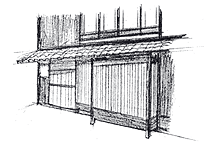 前ページの外国人向けゲストハウスの(道路側)の賃貸が決まり、入り口部分をモルタル塗りから、腰板、しっくい塗りに変えて小さなレストランとして活用されることになった。(2006.6) |