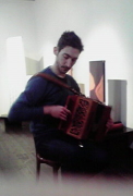 ![]() 時間:17:30〜 場所:京都生活工藝館 無名舎(吉田家) 中京区新町通六角下る西側 料金: \1,500- 定員: 50名(要予約) 終了いたしました。 オルガネットの紹介: 構造はアコーディオンと同じですが、左右にボタンが、それぞれ2〜18個、12〜44個あり、これらを押すと内部に張り巡らされたシャフトを通って空気弁が開くようになっています。蛇ばらで送った空気がこの弁を通りリードを通り抜けるとき振動させ音を鳴らします。右手側でメロディーを奏で、左手側でベース音を出します。押す時と引く時、どちらも音を出すことができ、同時に複数の音を鳴らせるので、奏でる音は繊細なハーモニーを感じるさせるものになります。サイズは小さく持ち運び易いので屋外の演奏に適していて、イタリアでは祭や教会、劇場など様々な場面で演奏され、人々はこの音色の中でダンスを楽しみます。曲はイタリア南部の伝統的なもので、歌の主題は農民の生活から取ったストーリー性のあるものです。 DONATO RICCIONI (ドナート・リッチョーニ)1979年生まれ。イタリア(ローマ)出身。6歳でオルガネット奏者に師事、オルガネットを始める。12歳でオルガネットコンクール優勝。18歳の時、ローマにてオルガネット、タンブリン教室開講。その後、スペイン、イタリア、ドイツなどのフェスティバル出演、テレビにも出演する。昨年来日、現在岡山県笠岡市在住。 お問合せは、ギャラリーひたむき TEL:075-221-8507