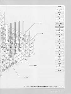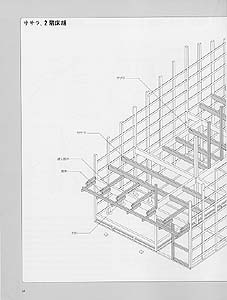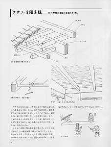 | 第2章では、京町家が実際にどのようにできているのかを躯体・構造の解説をメインに、イラストでその施工プロセスを追っていきます。ひとつ石はどのように置くのか? 通し腕木のメカニズムは? 京町家のコアとなる構造はどこか? などをわかりやすく表現しております。また、京町家の躯体を立体表現(アクソメ)で順を追って解説したものもあり、京町家の絵本としても楽しめるものとなっています。担当は、矢ヶ崎善太郎先生(京都工芸繊維大学助教授)、町家設計図作成は花岡健氏(建築専門学校講師)、アイソメ図作成は、工藤誠己氏(京都工芸繊維大学生)、イラストは野村彰氏(京都府職員)です。