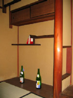 不便なことは、まずトイレですね。トイレは庭を通っていくのですが、寒いし、和式のトイレなので洋式に慣れている身としては辛いです。足が筋肉痛になりそう。引っ越してきてすぐは台所に明かりがつかなくて不便でしたが、電球が切れていることに気づいてとりかえたら明かりがついて、その時は本当にうれしかったです。エジソンありがとう! と思いました。不便な状態を経験しないと、便利な状態が「便利だ」とわからないと思います。電気の容量が少ないというのも不便なことの一つなんですが、僕は夏にクーラーもつけないし、これは不便だけどそんなに苦にはならないことです。いいところは、やっぱり友達をたくさん呼べるところかなあ。寒いですけど、寝袋もってきてもらったら5人でも6人でも泊まれますし。この家を借りることができて本当によかったですよ。 ――床の間の横には「おんな泣かせ」と「くどき上手」というお酒のビンが飾ってありました。中身はカラでしたが。 |