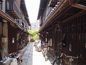 ――京町家に住むことになったいきさつをお教えください。 1年半前、結婚してからの新居を探すにあたり、大学時代慣れ親しんだ左京区でマンションか、京町家か迷いました。絶対に京町家という気持ちではなく、1軒家の親元から出たことのなかった私にとって、マンションも興味津津の居住環境でした。ところが、いざ探し出してみると条件の段階でイメージしているものがなく、住まい探しの大変さを知りました。しかしながら、それと同時並行で京町家情報センターに登録して町家も探し出してみると、不動産屋さんにいったその日に値段と場所と大きさ、雰囲気等、イメージしていたおうちに出会いました。すぐに現地に行ってみると、偶然降っていた雪越しに映る路地奥の姿がなんとも言えず幻想的で即決しました。拍子抜けでしたが、これが縁というやつでしょうか。 ――実際に住んでみていかがでしょうか。 住みだして、よく耳にする基本的な困難にぶち当たることはありました。ねずみが米袋をかじっていた、ブレーカー落ちやすい、階段から落ちる(夫婦で4回!)、冬寒い等等。しかし、暮らすことを楽しめるおうちだと思いました。 例えば、かど掃き。皆の共有の路地を汚すのは気が引けますし、きれいな路地がきれいに保たれると自分も嬉しいです。他にも、設え。有難いことに我が家には友人や職場関係の方等たくさんの方が来て下さいます。人が来られると飾ってみたくなるもののようで、テーブルクロスを選んだり、季節のお花を飾ったり、玄関に何か置いてみたり、とちょっとしたことを楽しんでおります。 今年楽町楽家でオープンハウスをした際、斜向かいの方が遊びに来て下さいました。間取りや大きさの違いがあるか、というところで話が盛り上がり、その後その方のおうちも拝見させてもらいました。(間取りは違いました。)こんなやり取りも長屋ならではの経験のように思います。 ここでの暮らしの魅力は家の中だけではなく、利便性も含めた「まちに住む」というところです。仕事柄「職住共存地域」という言葉はよく耳にしていたのですが、まさに職と住が混在し両立する暮らしをしています。自転車圏内に職場があり、信号を越えない距離に買い物するお店があり、飲食店があり、病院があり、銭湯がある。日常生活と非日常生活が混在しているという点は、まち(都市)ならではの文化です。 そして日常、非日常と色々なレベルの人と接することが多いのがまちなのでしょうか。その為、小さくてもご近所や来客等、人とコミュニケーションをとる場が道、玄関、奥と設けられていることが、本での勉強ではなく、現実として実感している日々です。これからも、夫婦だけではなく色々なお客さんとの関係も含め、住みこなしていきたいと思います。 2012.11.1