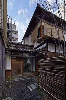――京町家に住むことになったいきさつをお教え下さい 3年前に京町家に住もうと考え、探し始めました。当初は、物件を探すのに2年ほどかかると考えて探し始めましたが、京町家情報センターに相談し、最初に紹介をされた2つの物件のうちの1軒で決めました。初めから、すまい目的であったため、表屋造の商家型京町家ではなくて、路地奥の静かな物件を探しており、決めたこの物件も専用通路を入った奥まったものでした。 最初に見た時は、約30年もの間空き家だったせいか荷物がたくさん詰まっていて埃・泥・カビだらけでした。一緒に見た母と妻は、このような古い家・ゴミ屋敷に住むことをイメージできず反対をしていました。そこで、購入する前に不動産業者にお願いをして建物の構造・造りを町家大工の棟梁に見立てていただきました。「元々、お客様を招く目的としても建てられた建物のようで、木材も良いものが使われており構造はしっかりしていて、建物の傾きもほぼないようなもの。縁の庇も丸太が使ってあったり、階段手摺や床の細工も丁寧なもので、大切に使われてきた良い建物だ。」、梁の埃を指で拭きとり「こんな埃、ほらとれるやろ。きれいな柾目が見えるか。」という棟梁のシンプルで真っ直ぐな説明に、最初は反対だった母と妻の反応も変わり、この物件に決めることになりました。 ――改装についてどのような点をポイントにされましたか 購入後、構想に1年、改修工事に1年かけました。この建物を購入し所有はしているが、「建物の長い歴史のうえでは借りている」という感覚を大切にし、「この建物にとって今やるべき改修・今できる改修は今やっておく」ということをしました。また、「伝統と今の価値観の融合」ということも考え、残すべきところは残し、今の生活に必要な部分は使いやすく改修することをしました。 基本的には、「元の状態に戻す」ということを考え、増築されていた部分は今回減築し元々の建物部分を改修しています。もちろん、水回り部分は傷みが激しかったこともあり、現代の使いやすいものを入れました。また、通り庭で火袋部分だったところも屋根が上げられ床がはられていましたが、その部分は吹き抜けに戻し、元々通り庭だった場所なので庭との繋がりも考え、下足ではありませんが一段座敷より下げたタイル貼りの土間とするなど、キッチンダイニングスペースとして今の価値観を取り入れ、モダンに仕上げています。 耐震改修としても、要所要所には耐力壁を増設し、また奥の様子が見え光が入る木格子耐力壁を使い、耐震的にも補強をしました。 ――住んでみていかがでしょう 季節を感じながら暮らしています。夏には建具替えもして、この家に受け継がれていた葦戸を再利用したり、座敷簾も新たに作り、夏模様を楽しんでいます。ひな祭りなど、季節ごとの行事も飾り行うようになりました。 今年は来客がある時に冷房を少しつけたぐらいで、冷暖房がないとダメだった妻ですが今のところ問題なく快適に過ごしています。 8歳になる子供も、もっと障子に穴を開けたりいたずらが絶えないと思っていましたが、改修の時点から掃除や片付けなど一緒に参加していたからか、家を大切に使ってくれているように感じます。庭の草取りなどの作業もよく手伝ってくれ、町家の外との繋がりも感じるところです。 ――ご近所とのつきあいはいかがですか 先に、表に住まれている井上夫妻がおられたこともありスムーズに町内の方とは関われました。井上さんのお宅も同様、やはり町家を町家として保全再生し使っていることに良い印象を持っていただき、町内にも喜んでいただいているようです。先日の楽町楽家2014のイベントとして行ったトークライブの際にもご近所の方にもお声掛けし、来ていただき家の中も見ていただきました。このように、少しずつ町内の輪に入らせていただいております。 2014.9.1