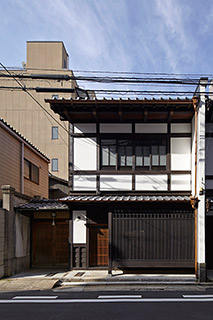 ――京町家に住むことになったいきさつ 路地奥の生川邸の改修の設計者として関わっていた最中、生川邸の表にある京町家も改修する縁があり、その表屋造りの京町家の意匠・構造改修の設計も任せて頂くこととなりました。プランニングの段階では、1階はフリースペース、2階は京町家の調査に関する事務所にしようという内容で設計を行っていました。私自身は京町家に住みたいという願望が強い訳ではなく、一度は町家住まいを体験しても良いかな、と思う程度でした。そんな折、私が結婚し、妻が染織作家としてアトリエが必要だという私たち夫婦を知った生川さんが『奥田さん、住みませんか?』と、声をかけて頂き、まさか自分が改修した京町家に住むことになるとは考えてもいませんでした。生川さんの紳士的でパワフルな人柄にも惹かれ、厚かましくもこの町家に住まわせていただく事になりました。 ――意匠・構造改修にも関わった 具体的になった改修の条件は、1階は全面土間としフリースペースとして活用し、2階に住空間を集約させることでした。看板建築であった町家らしさの残っていない現状のスナックは、本来あったであろう庭の部分にも増築がほどこされ、暗く陰気な雰囲気でした。改修計画として、表のファサードは隣家の意匠と共通したものとし、出格子も復元させ、京町家の佇まいを取り戻し、庭からの光が入るように以前の増築部を減築しました。構造的にも元々通り庭だった辺りに袖壁を設け、壁を共有している隣家も含んだ構造計画を行いました。また隣家との共有の壁には、防音対策も施しました。 生川邸と同じく「古い空間と現代生活の融合」というテーマもあり、現代の生活には不可欠な電気や衛生の配管インフラを真壁造りの空間に違和感なく収める工夫をすることで、京町家の趣ある空間を損ねない努力をしました。照明計画に関しても同様に、建物の構造部に穴を開けたりすることは無いよう、梁などを避けて配置しています。 ――nitera shinka (二テラシンカ) 1階の奥の部分は、染織作家をしている妻の作業スペースとして使っています。表の部分は、nitera shinnka(←最寄りの住所、二条寺町新烏丸より)と名付け、「お気にりの本を見つけたり、つくる手仕事にふれたり、毎日をちょっと楽しくする空間」として、ワークショップなどを開いています。この活動では人が人を呼び、たくさんの繋がりができ、現在は大喜書店さんが行うBOOKBARや、寄せ植え教室、デッサン教室などを行っています。今後も人の繋がりから面白いイベントや関わりを続けていくスペースになればと思っています。 ――住んでみて 奥に住むオーナーの生川さん、お隣の井上さんとも同年代ということもあり、お互いに良い距離間でお付き合いさせて頂いています。街中であるにも関わらず、良い意味でお互いの息遣いを感じ、安心して暮らせております。庭を介しての自然や、家の木が軋む音や香り、土壁に落ちる光と影など、五感で町家の空間を感じています。 「生きている町家」と一緒に暮らしている感覚があり、町家の細かいところまで気遣うようになりました。丁寧に住む意識や気持ちが芽生えたように思います。この町家は季節や時間を感じて大切に生きるという気持ちを抱かせてくれるように思います。 この町家は今後色々な人が関わっていく町家であると思います。私たちは、この家が『まだ居ていいよ』と言っていてくれるまで、住まわせて頂いている、という気持ちでこの家と一緒に今を過ごさせていただいています。 2014.11.1