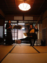 事務局覚え書き5月22日、29日の2週にわたって、「町家を体感」してもらおうと「町家でコンサート」を開きました。22日はアーチリュートとリコーダによる、ルネッサンス、バロックの音楽を、29日はタブラとシタール、ディジュリヂュという民族楽器の競演を楽しみました。どちらも耳にやさしい響きが、音空間としても町家が優れたものを持っていることを証明しておりました。参加者は22日が約30人、29日は約50人とあふれんばかりでしたが、近所の人たちも含めた参加者にも演奏者にも大変好評で、引き続きこの企画を実現していきたいと考えております。 オーナー登録数 44/ユーザー登録数 延369/物件登録数 延343/契約件数 31 (04年6月10日) |