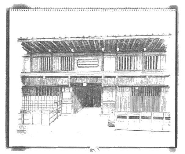400年前、京都をモデルに作られた城下町で、碁盤の目の道路、鴨川に対応する宮川、東山の麓の寺町等がある。江戸時代の町並が保存されており、切妻平入りで屋根勾配は緩い。1階の道路側に、厚板を使った独特の付け庇をつける。外部の梁とか桁の先端が白く塗られているのも目につく。ほとんどが柱を見せる真壁造り。2階の格子は細かい連子格子だが、1階の格子は縦横に粗く組んだ特徴的な格子で、その中に簾をかけ、奥に障子を入れる。高山格子とも呼ばれている。京都では簾は外に下げるが、高山では内に下げている。内部の間取りは、入り口から続く土間が中に入ると広くなっており、土間に接する部屋も含めて大きな吹き抜けになっている。火を扱う設備としては、竈(かまど)もあるが「いろり」もある。 |