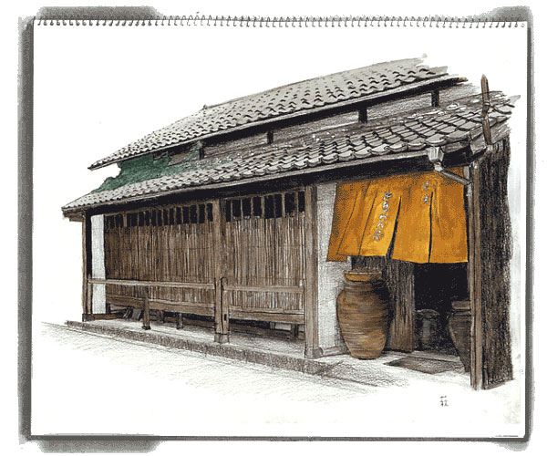 城下町として知られた萩には、城の周りを中心に武士たちの住居が多く残っている。白い土塀が続き、立派な門構えの屋敷町が印象的だが、これは町家ではない。堅固な塀に囲まれて、内部に居住専用の住居がある形で、外部からの侵入を防ぐための防御の姿をしている。それに比べこの萩焼の町家はなんとも無防備に見える。無防備だけれども軽快で親しみやすい。道に面して建っており、職住共存の建物である町家と塀に囲まれた武家屋敷を対比してみるのもまた一興。