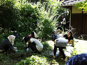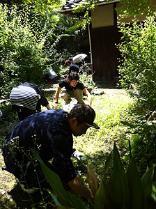 ピアノホールとして使われている蔵や、お座敷にも上がらせていただき、どちらもビルの中の教室とは違い、風が通り、6月の終わりとは思えないひんやりした空気が漂っていました。草引きで気持ちもすっきり、美しい空間も見せていただき、気持ち良い初夏の一日となりました。 |