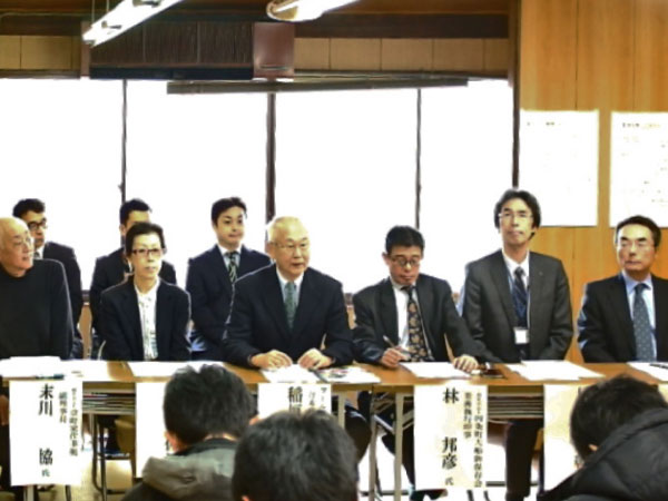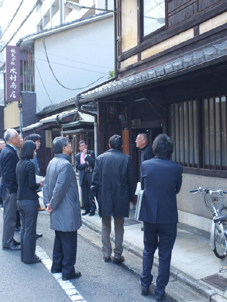 2月10日、四条町大船鉾会所にてワールド・モニュメント財団の助成による再生プロジェクトの公式記者会見が開かれました。WMF日本代表 稲垣光彦氏と、林邦彦氏・木村宣介氏はじめ四条町大船鉾保存会の皆さん、京町家再生研究会 小島冨佐江氏、京町家作事組 末川協氏、京都市都市計画局 松田彰氏、京都市景観・まちづくりセンター 青山吉隆氏が代表して、ニューヨークに本部を構えるWMFが半世紀にわたり様々な助成活動を続ける中での日本における足跡、特に京町家再生研究会との協同プロジェクト第一期釜座町町家・第二期旧村西家に続き、今回第三期プロジェクトとして四条町大船鉾会所の再生を進める事となった経緯について、また大船鉾の復興からこれまで、四条町で祇園祭を支えてこられた皆さんの活動や、京都で今なお失われつつある町家を保全継承していくための取組みなどについて説明されました。