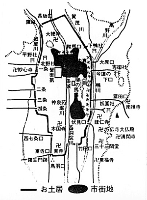 第5回 京洛小史 望月秀祐 ●海底の京都盆地 今から130万年前から30万年前までの間に合計7回にわたって、古京都湾といわれる海底が出現したと考えられています。その時期は洪積世と呼ばれて、寒冷な気候の氷期と温暖な気候の間氷期とが数万年ないし、数十万年の間隔で繰り返され、温暖な時期に海水準が上昇し、京都盆地にまで海水が浸入してきたのです。 京都盆地全体が海で、魚が群れをなし、京都三山の際まで波が打ち寄せていた風景は想像し難いが、太古はそうであったようです。 ●京町家のはじまり 古代平安京の庶民の住まいは、「小屋」と呼ばれる程度のもので、中世初期には都心の四条室町周辺にミセ(店)屋が建ちはじめました。間口2〜3間、奥行3〜4間、ミセとダイドコ(居間)の一列二室型の最小限の町家群でありました。そのほとんどが平家建てで屋根は石置板葺(ふ)きでした。 永禄2年(1559)、イエズス会の司祭ガスパール・ヴィレラは、四条西洞院に一軒の家を借りたところ、今にも倒れそうな掘っ立て小屋で、壁は細い葦(あし)で囲っただけ、屋根は藁(わら)で葺いてありましたが、雨が降れば漏れる馬小屋同然のひどいものであったとのことです。当時の貧しい人々の町家はこの程度のものであったのかも知れません。 ●京の超高塔 往時、白河一帯に建立された六勝寺(法勝寺、尊勝寺、最勝寺、円勝寺、成勝寺、延勝寺)は、歴史的に有名です。このうち、法勝寺(現市立動物園所在地)は承和2年(1075)白河天皇の御願寺として、造営されました。 法勝寺を特徴づけたものに八角九重の大塔があり、その高さは27丈(82m)を超えるもので、永保元年(1081)に着工され、3年後に完成しました。 この大塔は、百年後の元暦2年(1185)7月の京洛史上最大の京都大地震(マグニチュード7.4 兵庫県南部地震の2倍のエネルギー)によって大破壊しています。「平家物語」の記述によりますと、「白川辺の六勝寺はみな倒壊し、九重の塔も上の六層がくずれ落ちた」とあります。 実際は、大塔の相輪が折れ、桧皮葺(ひわだぶき)の屋根が全て落下し大塔の胴体部分だけが残り、辛うじて倒壊を免れています。しかし、承元2年(1208)に落雷によって焼失してしまいました。その後再建されましたが、康永元年(1342)に周辺の町家火災の飛び火により再び焼失し、以後は再建されませんでした。 ●京都大地震元年説 京都周辺の主な地震(平安以降)を調べますと、元年に起こった地震が多いことに気付きます。以下に代表的なものを並べます。 天慶元年(938)4月15日 文治元年(1185)7月9日 宝徳元年(1449)4月12日 慶長元年(1596)7月9日 天保元年(1830)7月2日 一見して、和暦元年が地震の当たり年のように思われます。実際は大地震など大きな厄災が発生すると、朝廷は穢(けが)れを嫌ってすぐ元号を変えたためです。具体的に説明しますと、元年のはじまりは天慶は5月22日、文治は8月14日、宝徳は7月28日、慶長は10月27日、天保は12月10日からです。つまり、地震があった年の元号は、その前の元号、天慶元年→承平7年、文治元年→元暦2年、宝徳元年→文安6年、慶長元年→文禄5年、天保元年→文政13年で呼ぶのが正しいのです。 しかし、慶長大地震で伏見城が倒壊した歴史を良く知っている人々にとっては、今さら文禄大地震と言い換えるのもおかしいですが、この大地震が起こったのは正しくは文禄5年7月9日です。 少し変わったことに、1185年は2度改元されています。それは寿永3年3月に平家が壇ノ浦で全滅した後、4月16日に元暦に改元され、続いて7月に京都大地震が起こった後、8月14日に文治に改元されています。 ●お土居 天正19年(1591)2月早々、豊臣秀吉は「お土居」の緊急築造を命じました。秀吉による京都大改造のはじまりでした。右図に示すとおり「お土居」はその延長が20キロメートルに及ぶ長大な土塁でしたが、たった2ヶ月で完成した事実に驚かされます。積み上げた土はお土居の外側を掘り下げた土が大半で、そのためお土居の外側には大きな堀ができています。お土居築造の目的は鴨川や紙屋川の氾濫防止と外敵からの警護にありました。 ![]() このお土居の鴨川沿い部分は、北は相国寺付近から南は五条までの寺町通との間の土地に市内の寺院が南北一列に並ぶように強制移転されています。 寛文10年(1670)に鴨川が大改修され、現在の堤防の幅に縮小された後、お土居と鴨川の間の「新地」が急速に市街地化され、川原町通(現在の河原町通)ができたときには、お土居は無用の長物となり潰されて無くなりました。古文書によると、お土居の位置(東縁)は河原町通から西へ約20メートル入ったところにあります。例えば京都市役所の本庁舎の東棟部分はお土居の上に乗っています。 |
