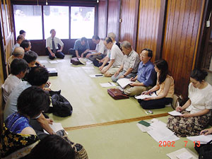 総会・7月例会の報告 祇園祭を楽しむ 日 時 平成14年7月13日(土) 14:00〜 NPO法人設立総会 15:00〜 例会 場 所 本部 ●特定非営利活動法人京町家再生研究会設立総会 14時から約1時間、設立総会を本部小島家ミセの間にて行いました。出席者23名、委任状を26名から頂いており、会員100名のうち三分の一以上を満たしていることから、総会が成立しました。議事次第に則り、大谷会長が議長を務め、設立発起人の京極、小島両幹事から定款や予算などについて、説明をいただきました。特定非営利活動法人になると今までの会長は理事長、幹事会は理事会、会員は社員となります。設立後は、任意団体である京町家再生研究会が移行する形になります。認証を受けることにより、事業の委託などを受けやすくなり、市との連携がはかれるようになるというメリットが挙げられます。審議事項は10議案に渡りましたが、いずれも異議なく、承認されました。 会としてはこれからもまちなかで具体的・実践的な研究及び再生活動を行っていこうと考えています。例会の中に調査をとりいれるなど、これからもみなさまの積極的な参加をお待ちしています。これを機にどんどんご意見を頂き、ご意向に沿っていきたいと考えておりますので、どうぞよろしくお願いします。 ●例会 この日は、新町通の界隈で曳初めが行われました。総会の後、3時から、実際に曳いてみた方、界わいを散策された方などなど、各自祇園祭を楽しんでいただきました。4時からは本部座敷でお茶とお菓子を味わって頂き、華やかな雰囲気で例会を終えました。(N) ●総会 本日の総会では、特定非営利活動促進法(以下、NPO法人と略記)の認証にむけた会員総会が行われました。NPO法人となることで、助成金が受けやすくなることや、行政との協働に向けた布石となることがありますが、やはり時代の要請ということもあり、社会的に認知されていることの証であることが説明されました。定款、今後の予算、組織の運営体制、各理事の選出がなされました。11月中旬の認証予定です。ちなみ、現在の大谷会長はNPO法人の認証以後は、大谷理事長となります。 ![]() ●例会「祇園祭を楽しむ」