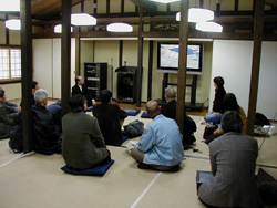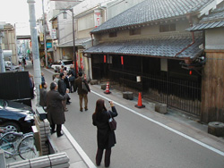12月例会報告 「平野郷見学会」 日時:平成16年12月11日(土) 場所:大阪市平野郷、全興寺他 中世の環濠自治都市の歴史と町割りの残る平野郷を見学しました。平野和郷衆、惣年寄の松村会長にご案内頂き、環濠の掘割の跡、大念仏寺、160年前のわらぶきの今野家、HOPE事業の改修のお饅頭屋さん等を訪ね歩きました。全興寺で25年間の平野のまちづくり活動のお話をお伺いし、柔らかい参加枠の中、面白く、気楽に、人のふんどしで続けるイベント主体からの活動に示唆を受けるところも多い見学会となりました。