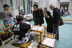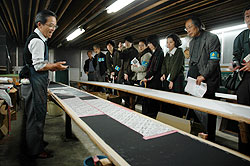 歩いて暮らせるまちづくりを目指すイベント「まちなかを歩く日」はしっかりと京都都心の年中行事になった感があります。11月例会では京町家再生研究会本部のある明倫学区でのお茶席、お隣の本能学区の公開工房や伝統工芸を訪ね、野口家の町家を見学しました。町の旦那さん方も裃で見学者を迎え、松井幹事は明倫校でお茶を立て、受付のまちセンのスタッフや学生ボランティアの中にも普段からお世話になっている方々の顔が多く、ご挨拶が続きます。お天気もなんとかもち、新しい会員の参加を迎え、京都のまちなかの暮らしの魅力を味わう一日となりました。 |