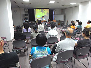 一通りお話しいただいた後は演奏を交えながら、さまざまな話題に花が咲きました。通奏低音として基本にあるものと、メロディとして随時奏でられるも のは町家の生活と文化にも当てはまるのかもしれない、という示唆は興味深いものでした。30名ほどの来場者を迎え、例年になく穏やかなシンポジウムと なりました。 なお、シンポジウム開始前に、京町家再生研究会事務局長小島富佐江氏から、ワールド・モニュメント財団について説明がありました。2009年10月 にウォッチリスト(危機遺産)に登録された京町家ですが、早速フリーマン財団から京町家の活用に対して25万ドルを支援していただけることになりまし た。一方、別の案件として、以前から釜座町町家(ちょういえ)の改修計画について相談を受けており、また作事組事務局の移転の話も進行していました。 そこでこの支援をきっかけに、釜座町の町家を再生し、活性化するという再生計画が具体化しています。今後は改修の経緯を周知することで皆様にもより深 く町家を理解していただいた上で、活用に向けてご協力頂きたいと思います。引き続きどうぞよろしくお願いします。 (丹羽結花) |