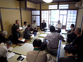 出席者20名、委任状23名により、会員総数68名のうち、3分の1以上の議決権があり、この総会は成立する旨、宣言。 大谷理事長より挨拶 東日本での大災害に心からお見舞い申し上げる。われわれの暮らしは科学の恩恵を受けているが、科学技術だけではうまくいかない。町家の暮らしにも同様のことがいえるので、しっかりと考えて対応していきたい。 今回は釜座町家での初めての総会である。昨年度はワールド・モニュメント財団の支援、ティファニー財団の助成など、町家が外国で評価を受けたが、一方で危機的状況が認識されているともいえる。今年度は19年目のスタートであり、新たな拠点を生かして活動を拡げていきたい。 議決事項 (1)第1号議案 平成22年度事業報告及び収支決算書承認の件 (自平成22年4月1日 至平成23年3月31日) 吉井監事より監査の結果、問題はないとの報告が行われる。 (2)第2号議案 平成23年度事業計画及び予算案承認の件 (自平成23年4月1日 至平成24年3月31日) (3)第3号議案 役員改選の件 今までの役員が引き続き2年任期で務める。 各議案とも異議無く承認された。会員増強や今後の活動について、活発な意見交換が行われた。また、釜座町の町家を今後どのように活用していくのかについても意見交換があり、充実した総会となった。 その他 釜座町町家プロジェクト 事業報告ならびに収支報告 小島事務局長より資料に基づき、報告があった。 |