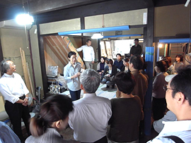 ●これからの京町家再生プロジェクト 改修後の催し ■完成披露のお茶会:町内の拠点として 11月12日にはWMF助成事業に関連する写真展と完成披露のレセプションが開催されますが、それに先立ち、「釜座」の名のとおり、古くからお茶事の釜を制作してきた町内ならではの催しとして、釜座町町内会によるお茶会が開催され、WMF関係者をお招きし、町家改修への助成にたいする感謝の気持ちを表すこととなっています。 完成後は、京町家ネットの活動拠点として京町家再生のために活かされるだけでなく、釜座町の住人のコミュニティーの拠点である町家(ちょういえ)としての役割も期待されます。 ■写真展