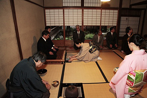 ![]() 11月18日(日)10:00より、吉田家、小島家、矢尾定、釜座町家、など京都中央部に点在する町家を会場に、参加者が自由に巡る形式の「記念茶会」が催されました。 それぞれ雰囲気の異なる町家巡り、見学のみであっても愉しい企画でしたが、更にその座敷にて、実際的な使い方を体験できる機会です。さっそく友人を誘い参加しました。 ●釜座町家 玄関で作事組の方々のお出迎えを受け、二階へ案内されると、この町家を活用して茶道の稽古に励んで来られたお町内の方が、「まだ慣れていませんので……」と言い添え、盆点前でもてなして下さいました。初々しい丁寧なお点前の一服は、とても心の籠った美味しいお服加減でした。 ●吉田家 こちらは、歴史的意匠建造物、景観重要建造物の指定を受け「京都生活工藝館・無名舎」として運営をされており、今回の茶席の席主はご当主 吉田孝次郎氏。周知の通り、現在、祇園祭山鉾連合会理事長として活躍されています。
