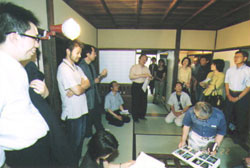 特に近所の方が「(工事中)どないなるんかと、思てたんえ!」と、中に入り、原状修復をみてもっとも驚かれ、「壊さんと、よう残してくれはったわ」と自分の家のように喜ばれ、なんと言っても、aさんの一族が訪れ、生まれ育った家でもあり、また50年ぶりという親戚の方もおられ、老朽化した室内や、朽ちた「塀」等を一番間近で記憶に残っている残像から、予想だにしない原状修復に、感慨深げに柱を摩ったり、また全体を見渡し子供の頃を懐かしんだりと、種々様々の思いが走馬灯の様に駆け巡るのか、見学会が終わっても、代わる代わる写真をとり、別れを惜しむ様をみて工事を行って良かったと思った瞬間です。 今回、3回に分けて説明を行いましたが、あまりにも多数参加の為、主催者側の不備で細部まで見学してもらう事ができず、ご迷惑をお掛けしました。しかし質問内容に人それぞれに、着眼点や興味の違いがあり、改めて勉強することができました。 改修や見学会を行う事を通して、1戸から近隣とのかかわりが、自然な形で町に溶け込み ファサードだけではなしに、心も繋がって居る町並になる事を望んで止みません。 施工担当 作事組 理事 (有)堀内工務店 堀内 健 |
