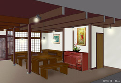 設計図に求められるのは施主と設計者の想いに食い違いがないことを確認できること、見積りの落ちがないようにすること、そして職方に住み手や設計者の想いが伝わることである。具体的には平面図に仕上げなどを書き込んだものと揚舞いや根継ぎなどの施工項目と材種などを記した仕様書及び設備機器類の位置、数、仕様を記したものは不可欠である。それ以外はできあがりイメージを伝えられるパース─CGパースはできあがりを的確に伝えられるがイメージを固定化するため手描きが良いかも知れない─などであるが、場合によってはできあがりイメージは口頭でも良い。 |