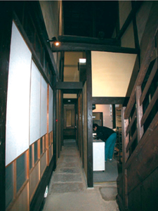 さらに大切な姿勢は本当にそれらの設備が必要なのか、あるいは適切なのかと問うことである。空調を例にとると町家は気密性が低い、いや通気をすることで建物としてもたせてきた。障子やガラス戸はいうに及ばず、天井からも壁の隙間からも、果ては畳の隙間からも空気は抜ける。気密性を前提に室全体を冷やしたり、暖めたりすることはもとより困難、あるいは不経済である。相応しい冷やし方は風を通して発汗による冷却効果を促進させること、あるいは打ち水で気化冷却を計ることである。暖め方は体熱の発散を防ぐことと輻射熱によること、すなわち着込むことと火鉢や炬燵、そして床暖房──床に埋め込むと床を20年ごとにめくることになるので置き式の暖房カーペットがよい──である。いかな京都でも耐えられない(と思う)暑さ寒さは2週間である。打ち水を見て招じ入れられた座敷には籐むしろが敷かれ、鴨居に御簾が、軒下には簾が吊られていて、応接する奥さんはさりげなくこちらに団扇をむけて蚊は追い涼を送り、手元には冷茶と水無月という格好の方が涼しげだと思うのだが……。 6)将来元に戻せるようにしておく 設備の変転と相まって変わってきたのは理想の住まいの形である。大正時代以降の座敷から椅子式への西洋化、戦後の科学的とされる食寝分離、技術力で自然を克服して実現する快適環境、個として確立された市民を育てるとされた子供室などである。それらの社会現象が町家に影響を与えた形跡はほとんどなく、ガラス戸の進入、仕上げの洋風化、ハシリの床組などの部分にとどまる。それは狭小間口で一列に室が並ぶ間取りではいかんともしがたいということは容易に想像がつく。しかし町家が時々の社会標準に対して逡巡している間に、社会標準の方が曖昧になってきた。今、近代が求めてきた住まいの形が全否定されないまでも反省を迫られている。日本の住まいから畳は消えなかったし、茶の間が見直され、受動的な自然力の活用が求められ、リビングアクセスなどの個室化を見直す動きなどである。いえば一巡して町家(田の字の民家も含めた伝統の住まい)に戻りつつある。 今後どのような住まいが理想の形とされるかは解らないが、近代のあゆみを省みて改修をすることが肝要である。間仕切りは撤去できるように、床・壁・天井は剥がせるように、設備は取り外せるようにである。むろんもとのままにしておくことが大前提である。