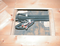 5)機器類の設置はメンテも考えて最小限に ──ただし必要になったときには対応できるように 町家には暖房器具としての火鉢や炬燵を除くと設備機器と呼べるようなものはなかった。明治以降、さまざまな設備が入れ替わり立ち替わり入り込んできた。明治期に建てられた町家で、特に大店の町家のトオリニワにはガス灯配管に始まり、碍子2線引き配線、ガス管、ビニール電線、給水管が縦横に走り、土間には給水管、雑排水管、汚水管が埋め込まれている。またそれらの管材の変化もめまぐるしく、給水管ひとつとっても鉛管に始まり、白ガス管、VLP管、VP管、HIVP管と変遷し、それらが撤去されず同居しているような場合、どれが生きていてどれが死んでいるのかわからないことも多い。機器も同様で、暖房器具を例にとると舶来のラジエータや電気パネルヒーター、バランス型各種ファンヒーター、各種ファンヒーター、各種ストーブ、電気ヒーター、床暖房となり、蔵を覗くと使わなくなったそれらの器具が山積みで保管されていたりする。