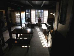 夏場の風通しを守る風は気化熱を促進し梢を揺らし涼を運ぶ。風の通り道であるトオリニワが広い場合、夏場の食堂や応接などの居室利用は工夫されて良い。逆にやっかいな冬場の風に対して、ほとんどの町家が格子の内側や縁先の雨戸の内側に、ガラス戸をはめてしまっていて、夏場の風通しを阻害している。 これでは町家に相応しい解決策とは言えない。もっとも風通しが命の町家とはいうものの、冬場は空気が乾燥しているため、一定の気密化を図っても支障がない。例えば、冬場はオモテや縁側の雨戸に代えて、ポリカボネート板などで軽量化をした框戸を入れるなどの、既存のつくりを活用する工夫が望まれる。 光と影を愉しみながら暗さを改善