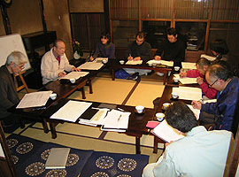 ◎第二期京町家棟梁塾たより 10■3月4日(水)座学19「襖、表具」 講師:若林荘造氏 ■3月8日(日)特別実習「京町家調査・伏見」 ■3月18日(水)座学20「見積り」 ■3月22日(日)実習10「襖、表具の見学」 打ち上げ 3月は襖、表具について作事組会員である若林愿鴻堂の若林氏にお話しいただきました。表具師は建築のなかで紙を扱う職人さんです。襖の他、障子、屏風、掛け軸などがあります。単純に見えますが、襖は最低でも7枚は貼りかさねてあるとのこと、丈夫で軽くて柔らかい襖には、高度な技能が秘められていました。また、紙が呼吸をすることで、部屋の環境を調整していることなども知りました。