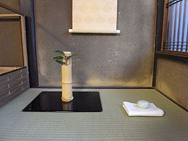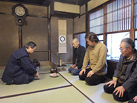 ◎第二期京町家棟梁塾たより 20■2月2日(木) 座学17「初歩的な茶の湯の用語と作法」 ■2月7日(日) 実習9「お茶会」 ■2月24日(水) 実習18「町家にまつわる庭木のはなし」 2月は京町家情報センターの松井薫氏より、お茶についてのお話と実習をご指導頂きました。座学では茶の湯の初歩について歴史的背景からひもとき茶の心とは何かを学び、実習では「正午のお茶事」をなぞり、ほとんど体験することのない濃茶を頂く貴重な機会となりました。お茶を習ったことのない塾生にとっては馴染みのない世界ですが、日常の礼儀作法にも通じ、町家にかかわる上で知っておきたいことばかりでした。