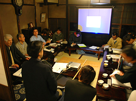 5月の棟梁塾ではテキストの「町家再生の技と知恵」に沿って座学が行われました。12日19日の二日間は「京町家が出来るまで」の講義です。板図と尺杖だけで出来る町家の設計、それで実際に遣り方を行い、基礎を据え、墨を付けるところまで、梶山理事長と荒木塾長より話しがありました。材料を刻む以前にも、京町家の成り立ちには、臨機応変でかつ、高度に標準化された無数の仕組みや決まりがあったことがわかります。