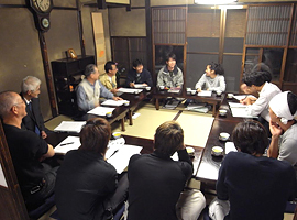 17日の実習では東奥畳店を訪ね、畳の材料や道具、寸法調整、仕上のグレードなどについて会員の東奥氏にお話を伺いました。畳の床(とこ)や表(おもて)の材料や製法、品質など、現物を手に取り、ツヤや堅さ、しなり等を確かめながら違いを学びました。最高級は、畳の裏を見ると違いがわかり、手間をかけることで、100年使ってもへたらないように工夫されていることがわかりました。化学製品や紙でできた畳表も商品化されていますが、使うほどにツヤが出て美しくなるのはやはり伝統的な「い草」の畳表とのことでした。