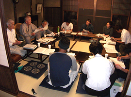 6月の1日の棟梁塾座学では梶山理事長より「町家再生の創意と工夫」をテキストに2回目の講義がありました。大型町家の用途変更の昨今の状況について末川より補足しました。