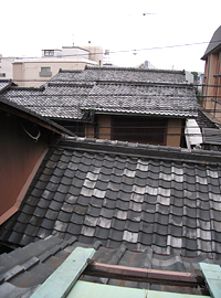 6月15日の座学では「洗い・塗装」担当の今江氏より講義がありました。プロによる11種類の「洗い」の手法と、住み手による日常の「手入れ」の方法をまず伺いました。素材や目的、最後の仕上方法によってさまざまに洗い方は変わります。同じ木部の洗いでも樹種によって薬の濃さやササラを変える繊細な奥行きがあります。続けてベンガラの歴史と製造方法の話があり、近年まで京都には神社仏閣に出いりする塗装の専門職があったことを伺いました。柿渋塗りを主とする日本の塗装が幕末に「ペルリ」とともに合成樹脂塗装と出会いところから始まる塗装業の近代化ですが、「エコ」に特化する昨今の材料の話を伺うと、町家の再生には柿渋、ベンガラ、松煙、油で十分事足りるような印象も受けました。