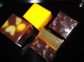 現在その種類は、練り羊羹、水羊羹、色や材質を変えて作る細工物の生菓子羊羹、砂糖を加えた寒天を固めた透明な錦玉液で作る錦玉羹(きんぎょくかん)や梔子(くちなし)カラメルなどで琥珀の色を付け良く煮詰めて日持ちの良い琥珀羹(こはくかん)などの夏羊羹、よく泡立てた卵白を加えた淡雪羹(あわゆきかん)、道明寺を入れた霙羹(みぞれかん)などがあります。 |
