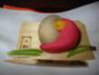 お正月用のお菓子としては、昔からの縁起物、たとえば松竹梅や鶴亀をかたどったもの、その年の干支をなぞらえた形や焼印を使ったもの、勅題歌(今年は「街」)にちなんだものなどがあります。 |