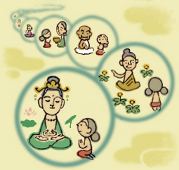 善財が、こない案じてると、また天女らが、口をそろえて、ぼろくそにどやしよる。