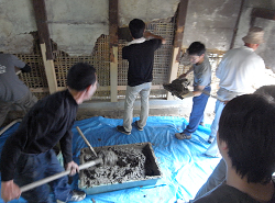 こんにちは。釜座町町家(ちょういえ)の改修工事の監修を担当している京町家作事組と申します。町家(ちょういえ)の改修後には入居を予定しています。入居後は町内の一員としての役目を果たして行きたいと思いますので、よろしくお願い申し上げます。 釜座町町家は改修後には京町家再生の拠点としての活用が期待されていますが、工事中にも見学会やワークショップなどの企画を予定しています。 以下、町内並びにご近所の皆様に、是非ご参加いただきたい企画をご案内させて頂きます。 工事説明会 及び 木(こ)舞掻き(まいかき)、荒壁付け(あらかべづけ)ワークショップ